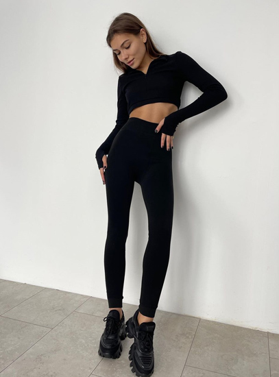Зручні та теплі легінси виконані із щільної тканини. Матеріал міцний, добре тягнеться і згладжує контур тіла. Легінси роблять ніжки візуально стрункішими і стильно виглядають як зі спортивним взуттям, так і з взуттям на підборах.